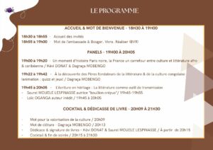 Des panels riches en culture et littérature, des échanges passionnants, et surtout, un moment chaleureux placé sous le signe du partage, de la transmission et de la fierté culturelle.Rejoignez-nous pour célébrer les mots, les mémoires et les voix qui font rayonner la culture congolaise à travers le monde.